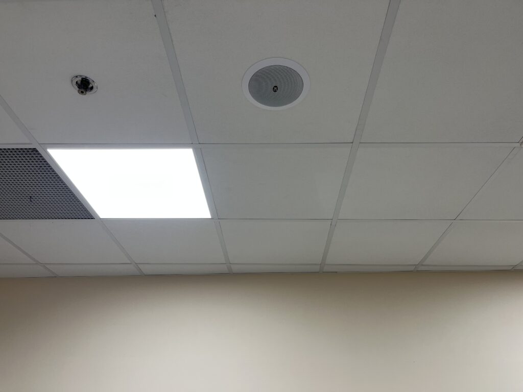 - montaż głośników sufitowych i ściennych w przestrzeniach treningowych oraz użytkowych